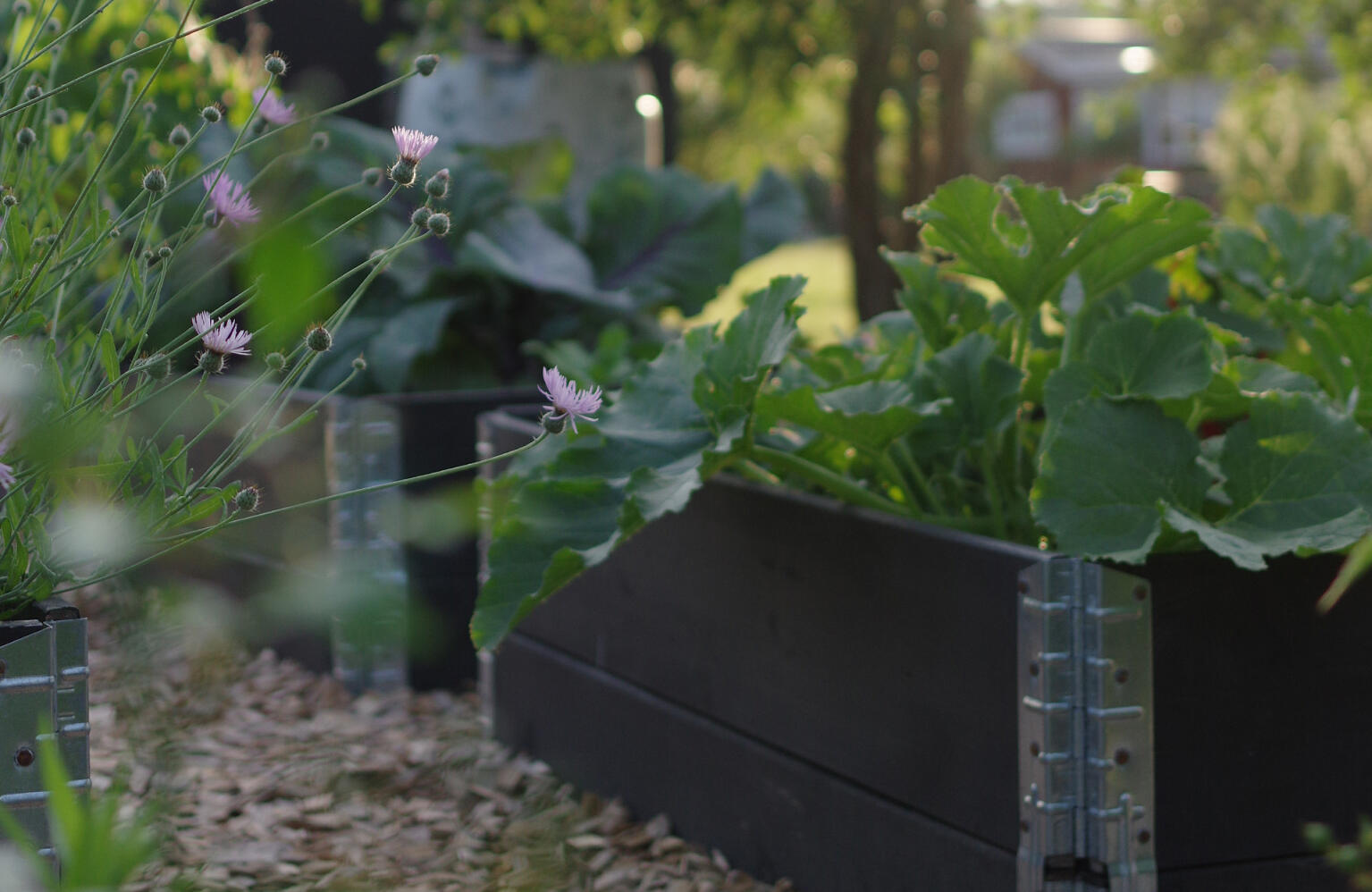 1. Bygg pallekarmene i ønsket høyde. Har du pallekarm i kjøkkenhage/hage kan du sette karmen rett på bakken. Er det på balkong, bruk et pallekarmunderlag for å beskytte treverket.