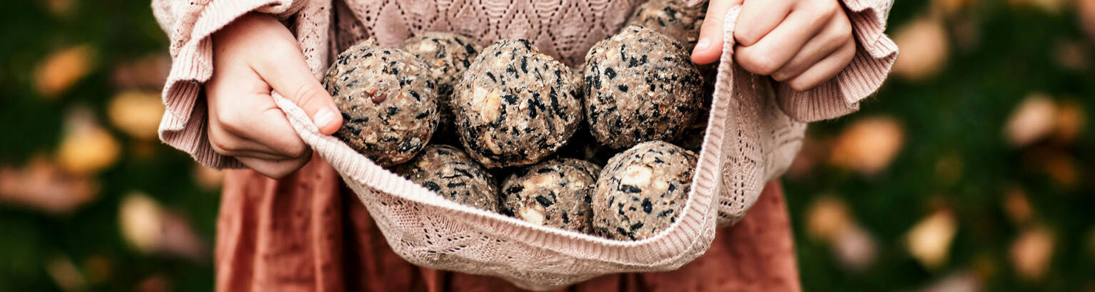 Meiseboller med fettholdige solsikkefrø innbakte i talg og hvete er en energipakke for småfuglene. Her finnes også luksuriøse meiseboller med ekstra mye fettrike frø, fylte kokosnøtter og frøfigurer som er dekorative i hagen.