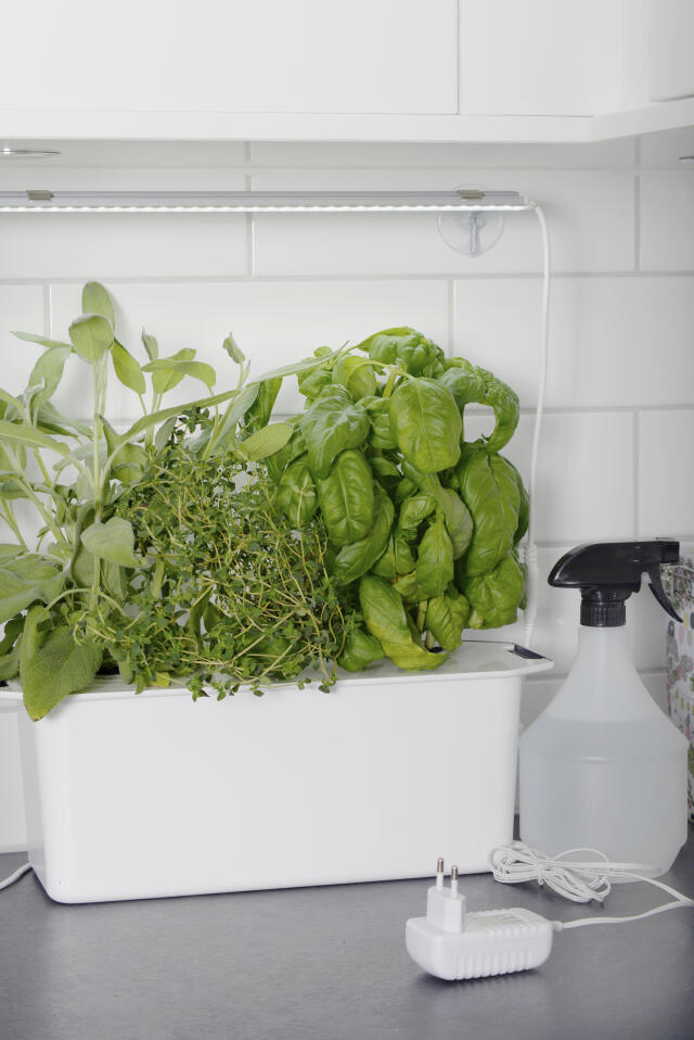 Med plantelys kan du holde grønnsaksdyrkingen i gang året rundt. Grønne blader og krydder fungerer bra og er verdt å dyrke. De vokser raskt, er best nyhøstede og krever lite jordvolum. Du trenger altså ingen store potter med mengder av tung jord.