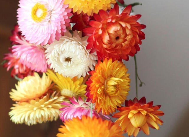 Når du skal tørke evighetsblomster, må du ikke plukke blomstene for tidlig eller for sent. De må ha rukket å slå ut, men ikke begynt å visne.
