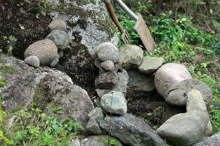 2. Bygg opp en haug ved hjelp av steiner, grus og plantejord blandet med sand.