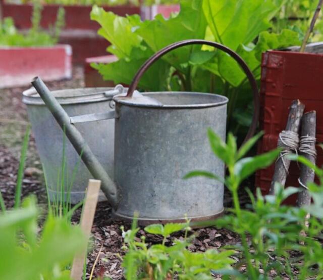 Da jeg begynte å dyrke for omtrent ti år siden, hadde jeg en teori om at grønnsaker ikke skulle skjemmes bort. De burde klare seg med vannet som falt fra oven; jeg tenkte at de på denne måten ville få dypere røtter og selv få tak i vann og næring. Det finnes snev av sannhet i den teorien, men i dag vet jeg at grønnsaker trenger både vann og næring i passelige porsjoner for å vokse og trives i kjøkkenhagen. Selv vanner jeg utpå kvelden ettersom risikoen for at bladene brennes av solens sterke stråler minimeres og dessuten fordamper ikke vannet like fort fra jorden.