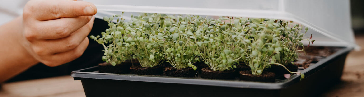 Med et minidrivhus er det enkelt å gi frøene en god start eller dyrke bladgrønt året rundt. Pluggbrettene i ulike størrelser lar deg så mange planter på et lite areal. Potter i ulike størrelser forenkler omplantingen. Våre plastpotter er holdbare slik at du kan bruke dem år etter år uten at de sprekker. Hvis du heller vil plante ut plantene uten å løfte dem ut av potten, skal du velge en av våre nedbrytbare varianter. Våre fiberpotter er fremstilt av gjenvunnet emballasjekartong og formoldes raskt når de settes i jorden.