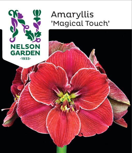 Elegant som en motedronning i fløyelsglinsende røde nyanser. De store velformede kronbladene er som hvitt silkefòr og blomstens midtre grønne ligner et smykke. En magisk vakker amaryllis. Lettdyrket og holdbar.