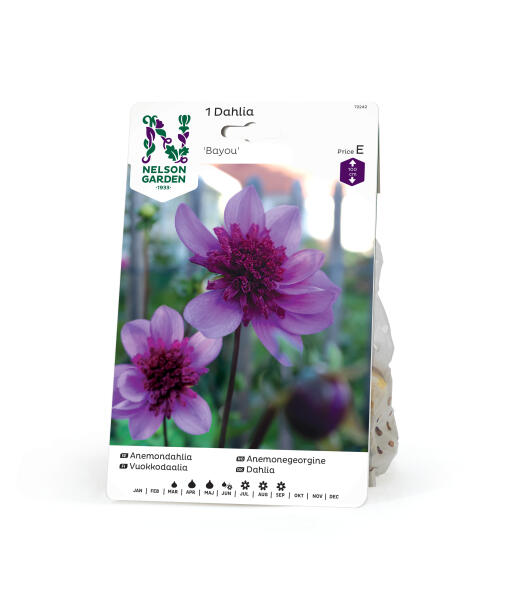 En åpen anemonegeorgine som lokker til seg bier og sommerfugler. Delikate lyselilla, nesten lavendelfargede ytre kronblad rundt et luftig vinrødt midtre er en lekker fargekombinasjon. Passer godt som snittbloms.