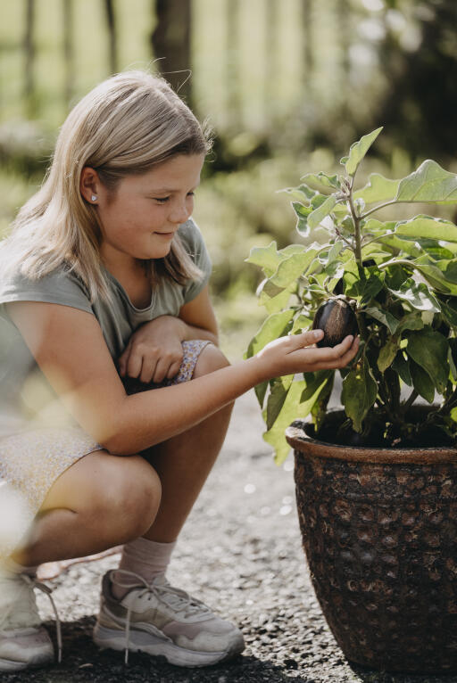 Avlange, mørkt fiolette frukter med delikat smak. Dyrkes i drivhus eller utendørs på et godt beskyttet sted. Høstes drøyt 5 mnd etter såing. Trives i næringsrik, veldrenert jord. Vannes regelmessig.