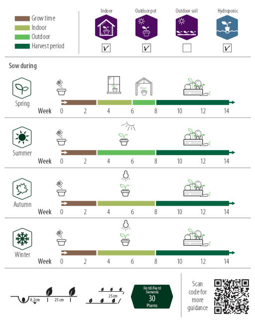 Mer detaljert informasjon om hvordan du sår, finnes her på produktsiden som du finner via QR-koden på posen.