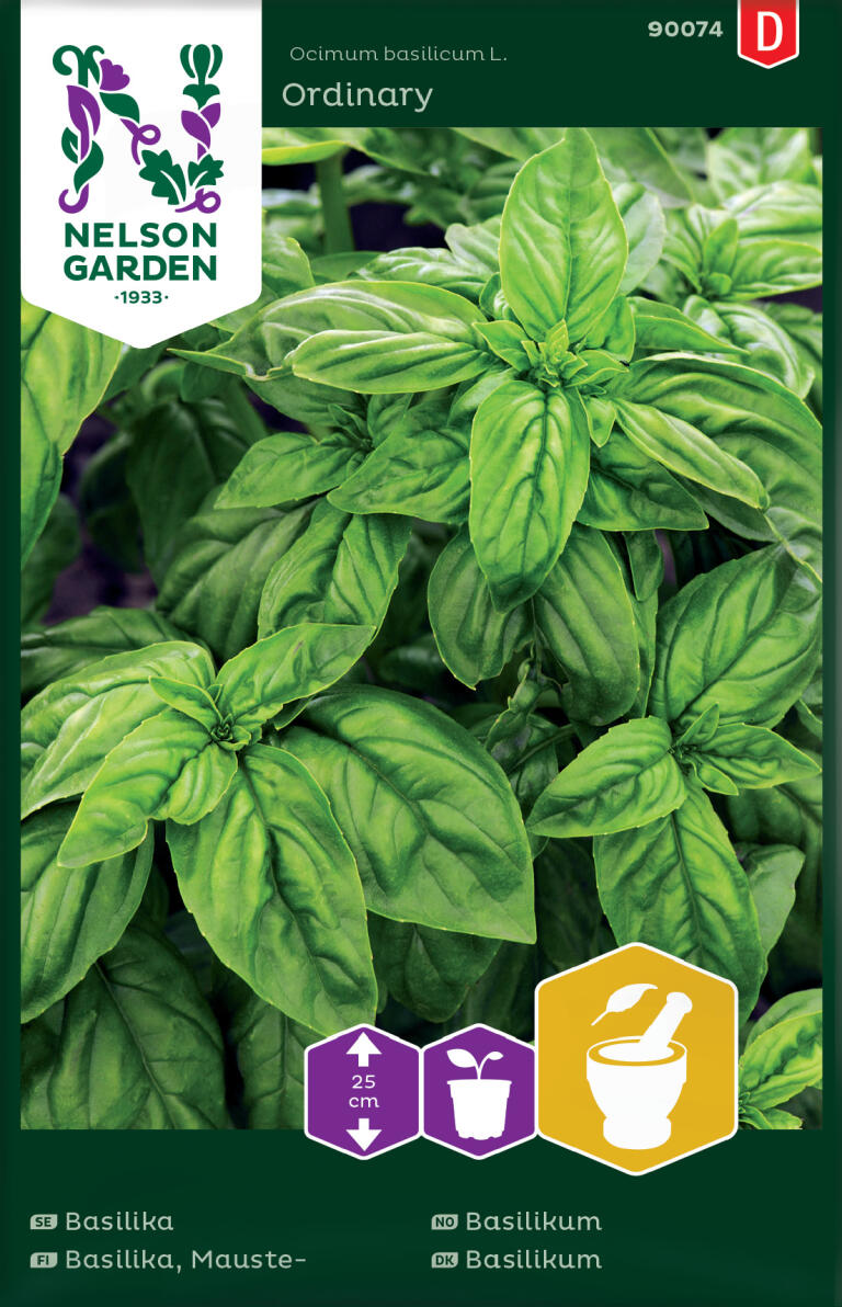 Aromatisk krydderplante som elsker varme. Dyrk basilikum i en potte på en varm og solfylt plass. Bladene høstes etter hvert.