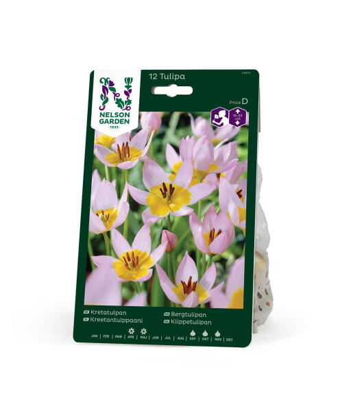 Hos Bergtulipanen er blomstene duftende, lyst rosalilla med gul basis, og sitter ofte flere sammen på samme stilk.