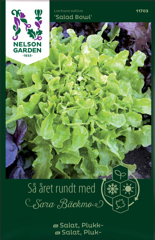 Lysegrønn plukksalat som minner om eikeblader, og er krusete i kantene. Høstes etter hvert. Gjenta gjerne såingen annehver uke.