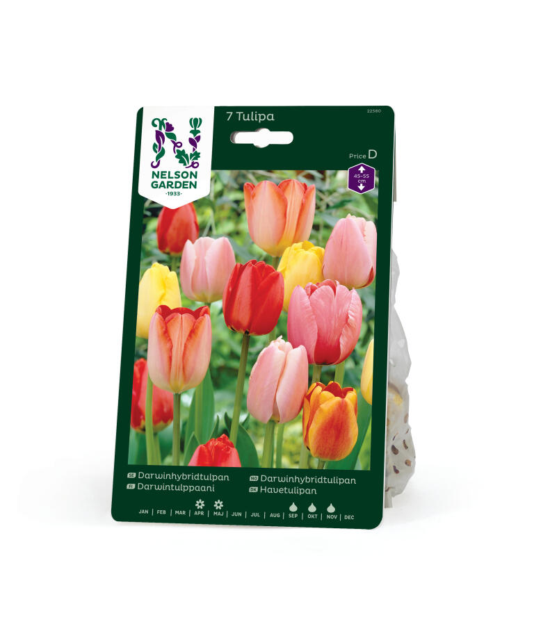 En herlig blanding av darwinhybridtulipaner i flere farger. Darwinhybridtulipanen er en middels tidlig tulipan med store, enkle blomster på lang og stø stilk. Darwinhybridtulipanen kan få et langt liv i hagen. Meget fin som snittblomst.