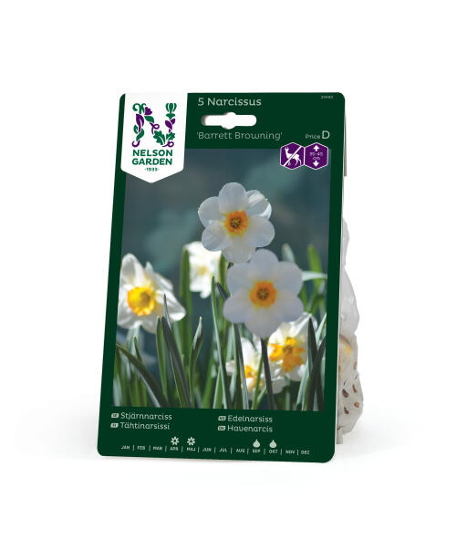 'Barrett Browning' er en edelnarsiss som tilhører Den småkronede gruppen. Denne sorten har hvite kalkblader og en bikrone som er kraftig oransje. Anses som mindre appetittlig for rådyr, hare, kanin og markmus.
