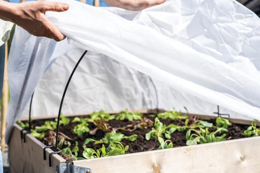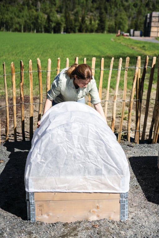 Tilbehør til pallekarm 120 x 80 cm utstyrt med bøyler. Formsydd planteduk med innsydd strikk som forbedrer dyrkingsklimaet og beskytter plantene. UV-stabil. Polypropen (PP) 50g/m².