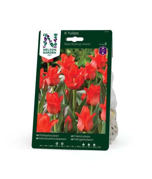 'Rødhette', eller 'Red Riding Hood', som den også heter, har store, avlange blomster i lysende karminrødt med kullsvart basis. Meget populær i hele Europa. Passer fint også blant busker og i steinpartier, i tillegg til i bedet.