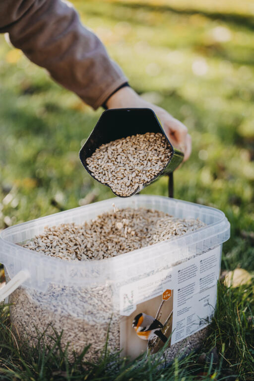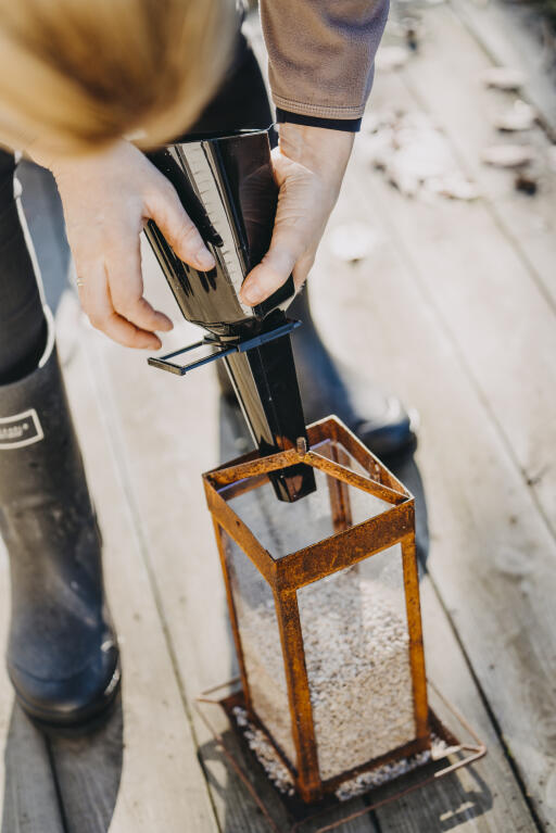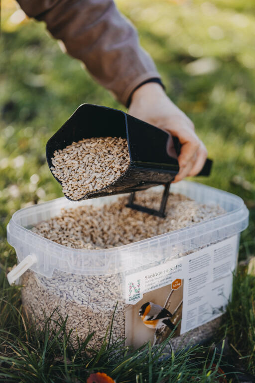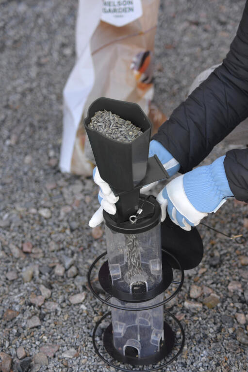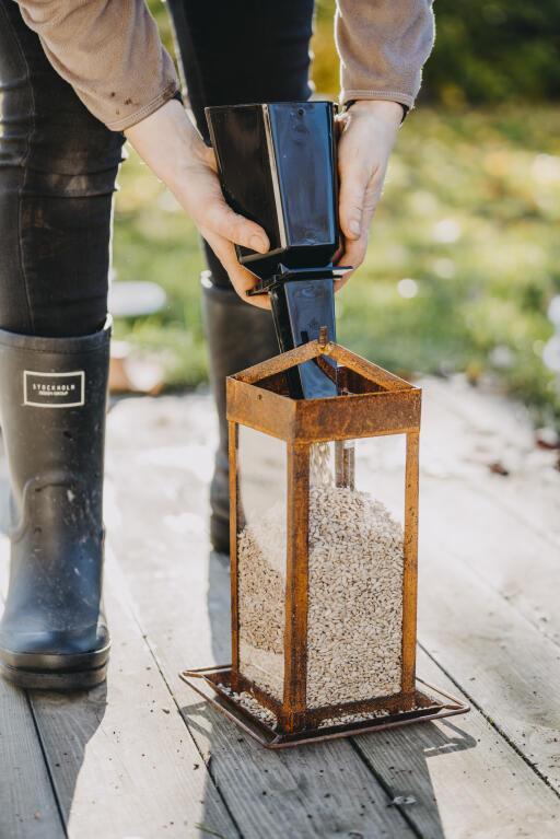 Forskuffe med smart åpne-/lukkefunksjon som gjør det lettere å fylle på fuglemat. Passer også til fuglematere med liten åpning. Polypropylen (PP), svart, ca 30 cm lang.