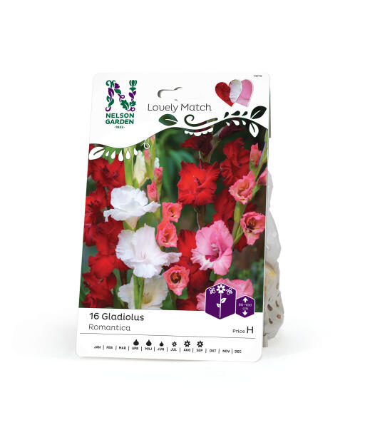 En vakker kombinasjon av storblomstrede gladioler i sterke farger. Plant dem i bed eller stor potte, og ikke nøl med å plukke til snitt når den nederste blomsten slår ut. En mer staselig bukett er vanskelig å finne.