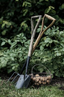Halvlang greip av svartlakkert stål og med FSC-sertifisert ask. Passer til å brukes i opphøyde bed, f.eks. pallekarmer. Et praktisk redskap i høy kvalitet. L 83 cm.