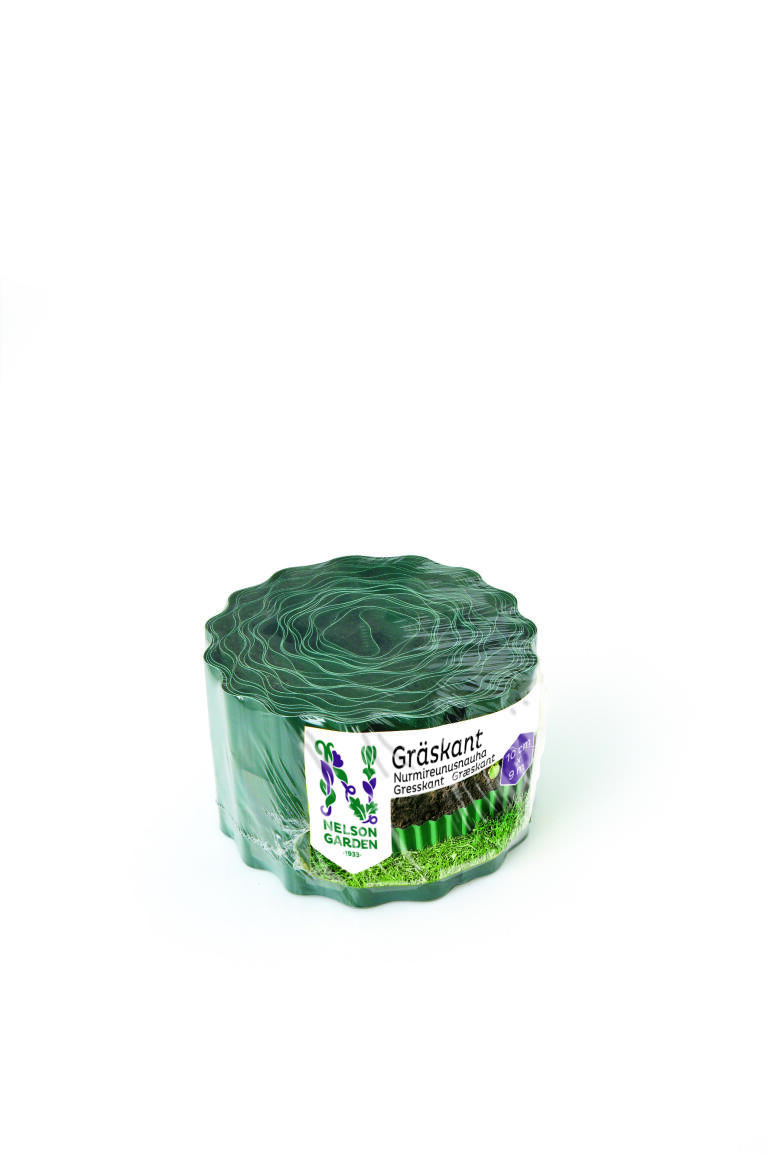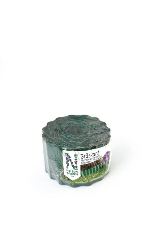 Kantbeskyttelse i plast. Praktisk å ha mellom bed og plen slik at gresset ikke sprer seg inn i bedet. Brukes til både rette og runde former. Grønn.