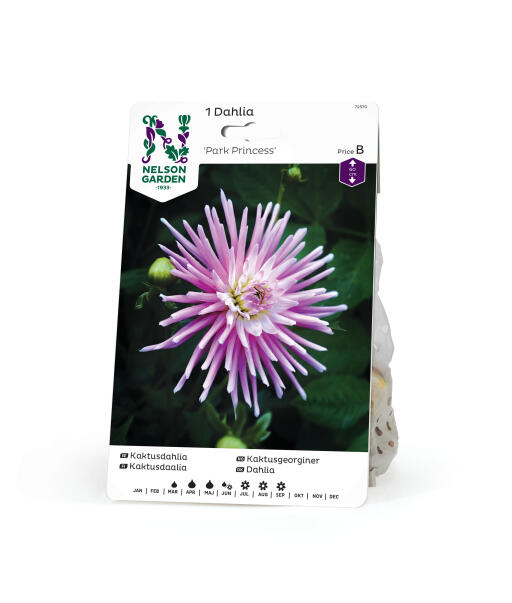 Lav kaktusblomstret georgine med en intens blomsterprakt som nesten skjuler bladverket. Rosa, sammenrullede kronblader med lyse spisser i skuddene. Meget lekker i en vakker potte, men også flere i gruppe i bedet.