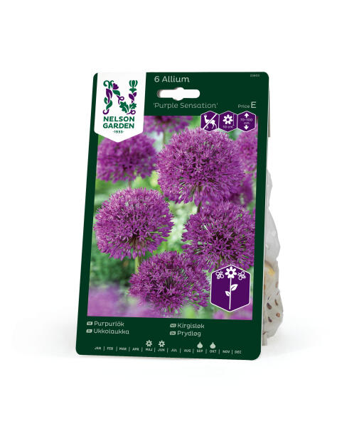 Kirgisløk med desimeterstore velfylte blomsterkuler i herlig lilla farge. Verdifull fordi den har sin skjønneste blomsterprakt mellom tulipan og georgine. Slett ikke ueffen som snitt. Anses å virke avvisende på markmus og mindre appetittlig for rådyr, hare og kanin.