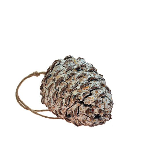 Et 100% naturprodukt! En stor kongle fylt med fett, oljerike frø og korn. Næringsrikt for småfuglene, dekorativt i hagen.