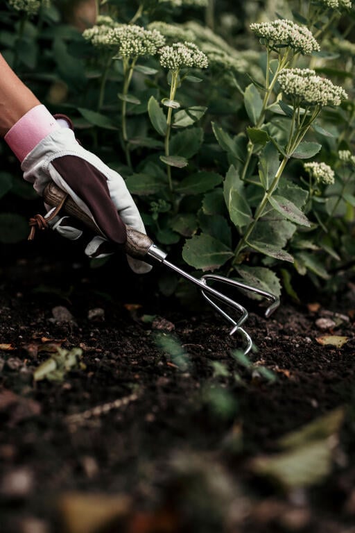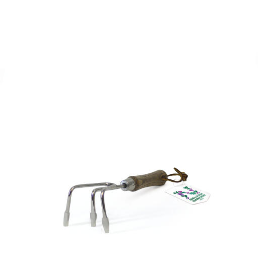 Håndkultivator i rustfritt stål og håndtak av FSC-sertifisert ask. Brukes til bearbeiding av jord. Et praktisk håndredskap av høy kvalitet. L 28 cm.