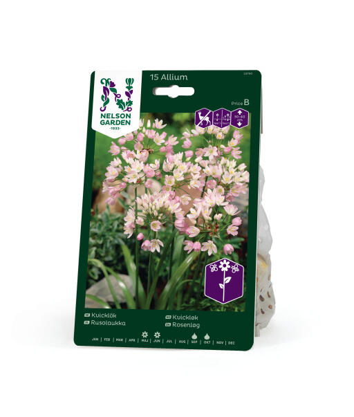 En allium i romantisk lyserosa som skaper vakre buketter. Anses som mindre appetittlig for rådyr, hare, kanin og markmus.