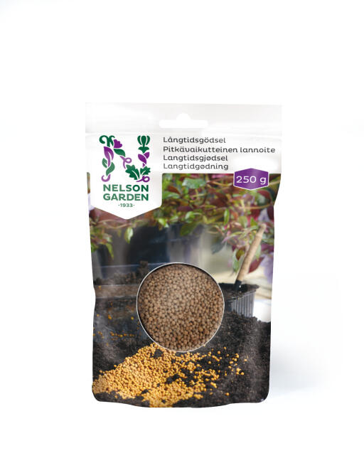 Består av granulerte korn med innkapslet næring. Næringen frigjøres ved kontakt av vann og varme. En dosering pr sesong. NPK 15-3-13.