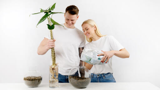 1. For drenering: plasser et lag med lecakuler i bunnen av potten før den fylles med jord.