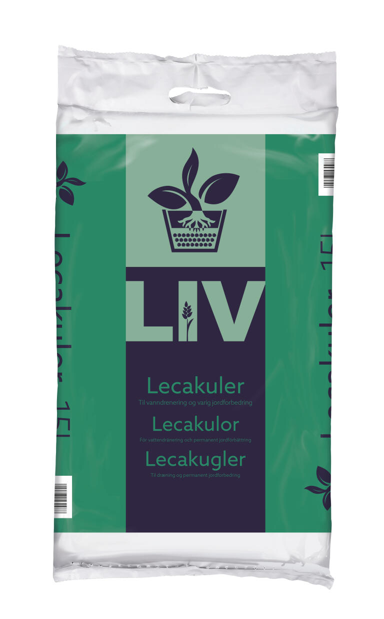 Liv Lecakuler gir god vanndrenering i potter, balkongkasser og pallekarmer, samt varig jordforbedring og dekorasjon. Bruk Liv Lecakuler både inne og ute.