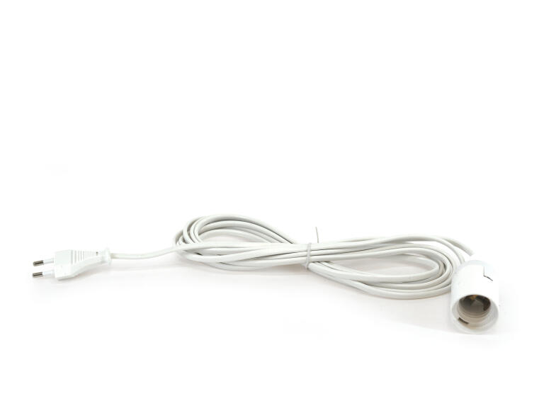 Komplett ujordet ledning. Klar til å brukes. Hvit, 4 m lang, E27-sokkel.