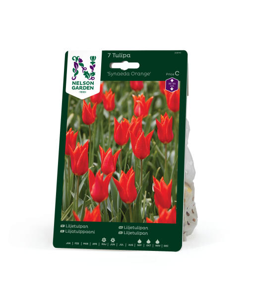 Som en egen sol i hagen stråler denne oransje liljeblomstrende tulipanen, der de gule kantene på kronbladene gir et spesielt skimmer! De er sentblomstrende, og i år da våren er kjølig, kan de blomstre langt ut i juni. Meget fin som snittblomst.