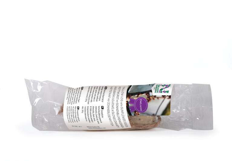 Energirik fuglemat, klar til å henges opp. Inneholder fett, solsikkefrø, korn og frø. Med biologisk nedbrytbart snøre, og bunn av kokosnøtt. 350 g.