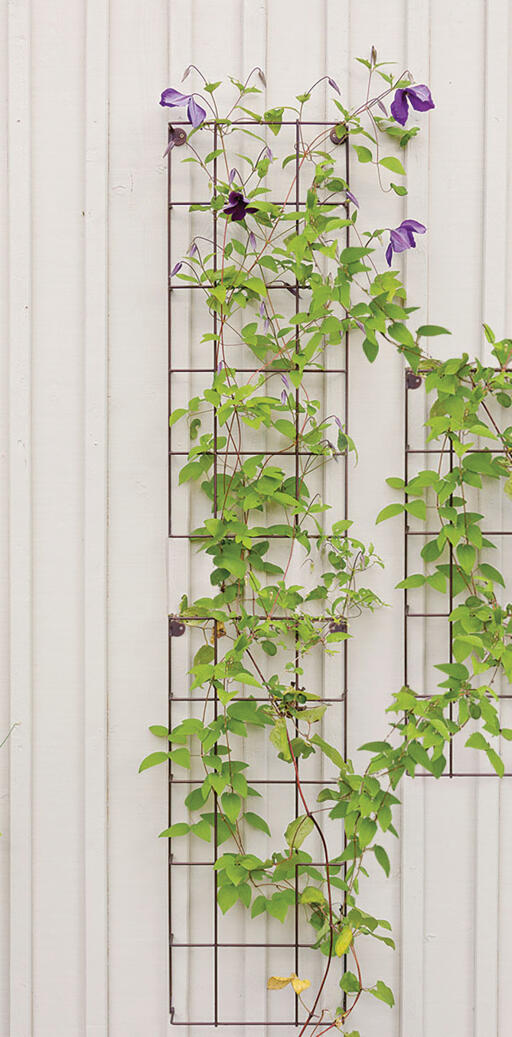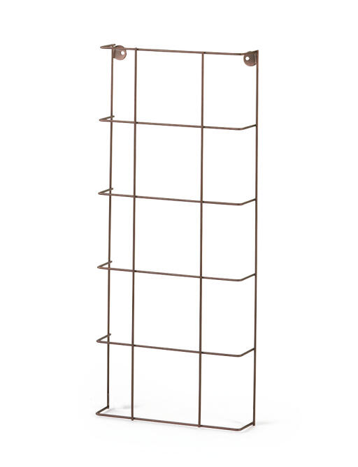 Lett og diskret espalier med innebygde fester og distanser for enkel veggmontering. Kombiner gjerne flere espalier til egne, elegante formasjoner. Av rustfarget, pulverlakkert stål. 78 x 34 cm.