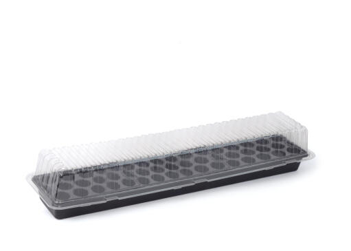 Stabilt minidrivhus med mål som passer vinduskarmen. Inkluderer tre praktiske minipluggbrett (av PS). Perfekt til forkultivering. Bunn av gjenvunnet material, PP. Lokk av PET. Svart. 14 x 68 cm.