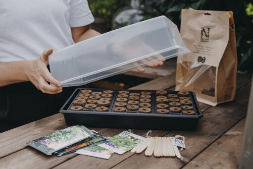 Plantetrau med lokk og minipluggbrett