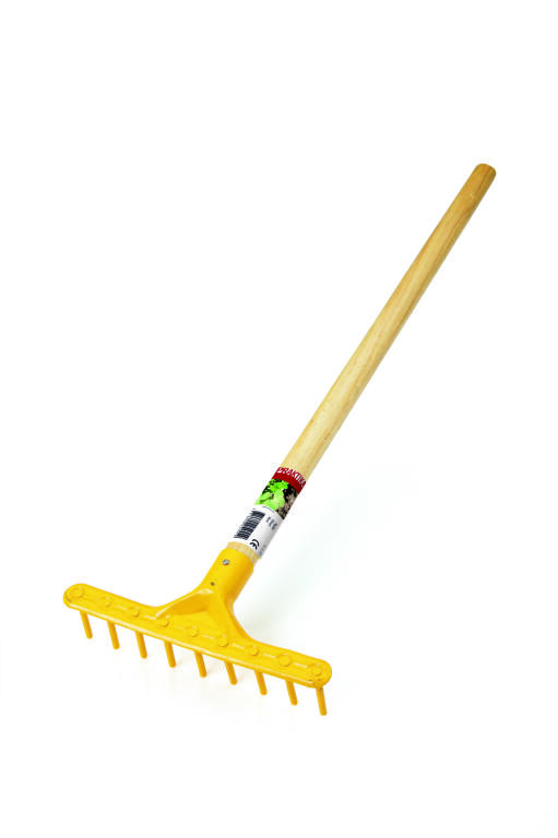 Liten rake med lakket skaft. Passer ikke til barn under 3 år. CE-merket. Lengde 67cm.
