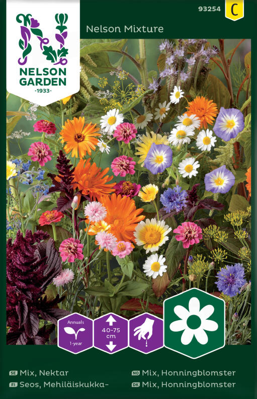 Nyttig og vakker blanding med utvalgte sorter som lokker til seg, og mater bier. Bier er nødvendig for pollinering i hagen. Inneholder reseda, agurkurt, ormehode, honningurt, sommermalope mm. Trives i porøs, moldrik jord, men flere sorter er lite krevende.