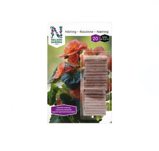 Organisk plantenæring til potteplanter. Av vegetabilske råvarer. Enkle å bruke. Stikkes i jorden og avgir korrekt mengde næring ved hver vanning i opptil tre måneder. NPK 5-0,5-4,5