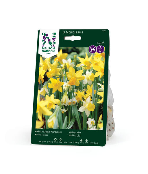 En herlig blanding av narsisser i forskjellige farger. Passer utmerket både i bedet, blant busker og under trær. Anses som mindre appetittlig for rådyr, hare, kanin og markmus.