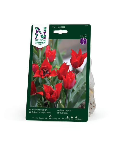Øyetulipanen er relativt sentblomstrende og blomstene er lysende røde. Bladene er smale, knapt centimeterbrede, og ofte bølgete med en rødaktig kant. Passer fint f.eks. i steinpartier eller i bedet sammen med lave stauder.