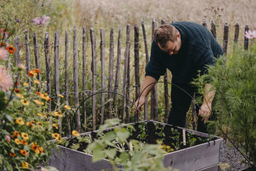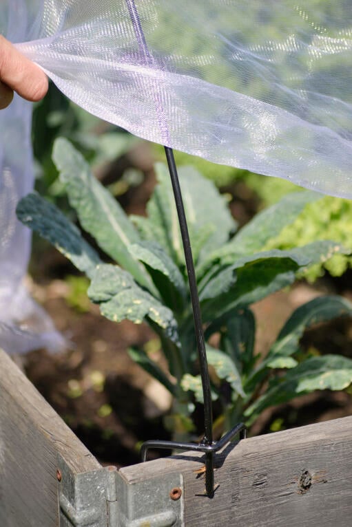 Tilbehør til pallekarm. To praktiske, svarte metallbøyler som festes på pallekarmen og dekkes med fiberduk eller plast for å forbedre dyrkingsklimaet og beskytte plantene.