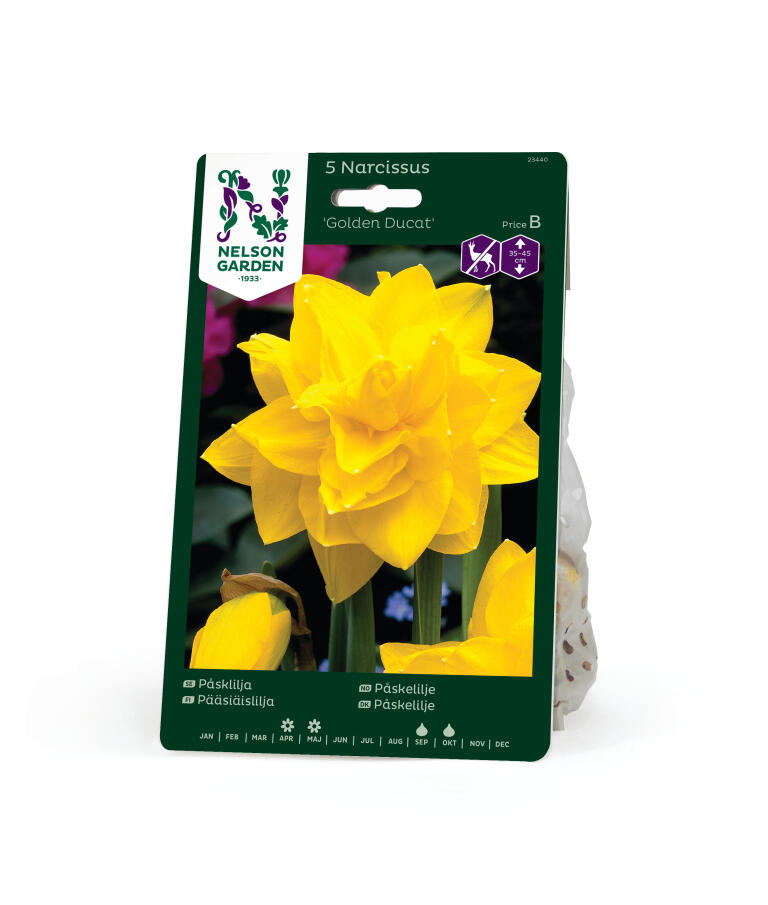 Et strålende blikkfang i bedet - denne påskeliljen har en stor og vakker gyldengul blomst som lyser som gull i bed og ellers i hagen. Anses som mindre appetittlig for rådyr, hare, kanin og markmus.