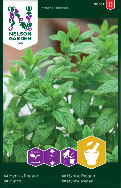 Sterkt duftende, aromatiske blad som brukes ferske eller tørkede til te, salater, sauser, søtsaker, drinker mm. Bladene dufter og smaker sterkt av peppermynteolje. Vakre, grønne blader og fine lillarosa blomsterspirer.