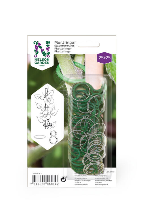 To ulike sorter planteringer. Runde ringer i metall og praktiske "åttetall" i plast. For oppbinding av planter. 50 stk.