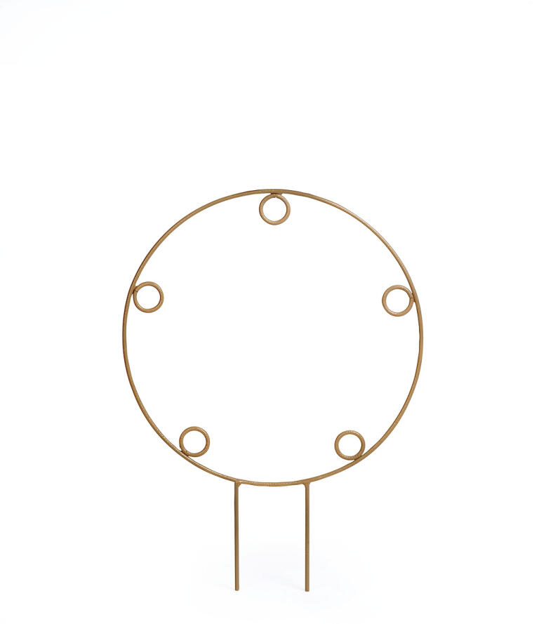 Potteespalier av messingfarget stål, formet som en sirkel. Egnet til potter både innendørs og utendørs. Ø28 cm, høyde 38 cm.