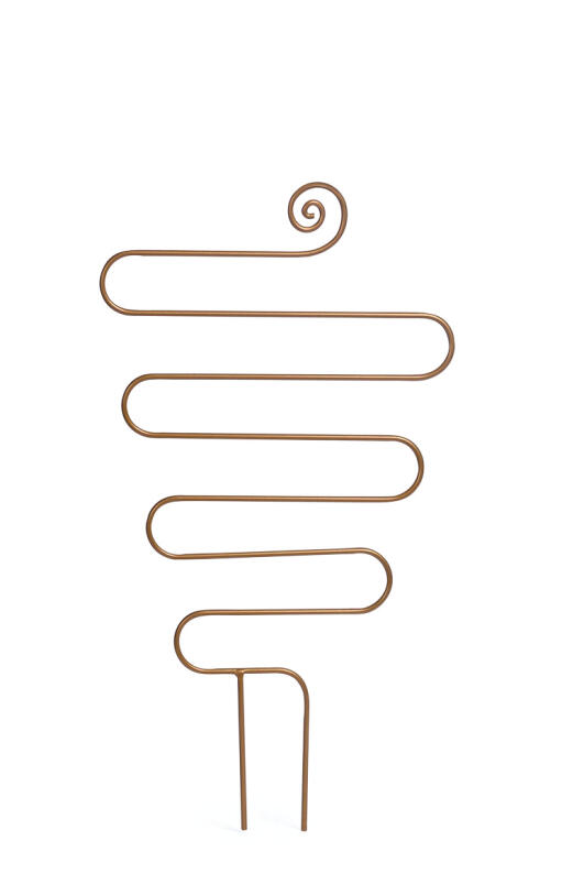 Potteespalier i messingfarget stål, elegant formet. Egnet til potter både innendørs og utendørs.