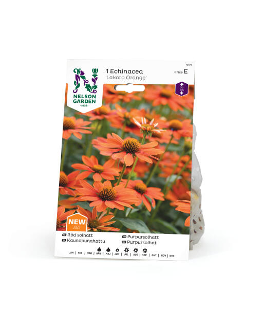 Echinacea, eller rød solhatt, i rustoransje tone. Blomstrer rikelig litt senere på sesongen, elskes av bier og sommerfugler. Fin i både potte og bed, og kan også plukkes inn som snittblomst.