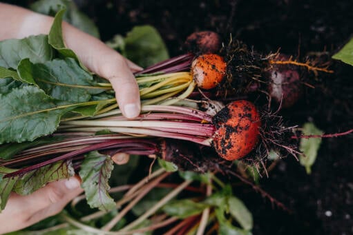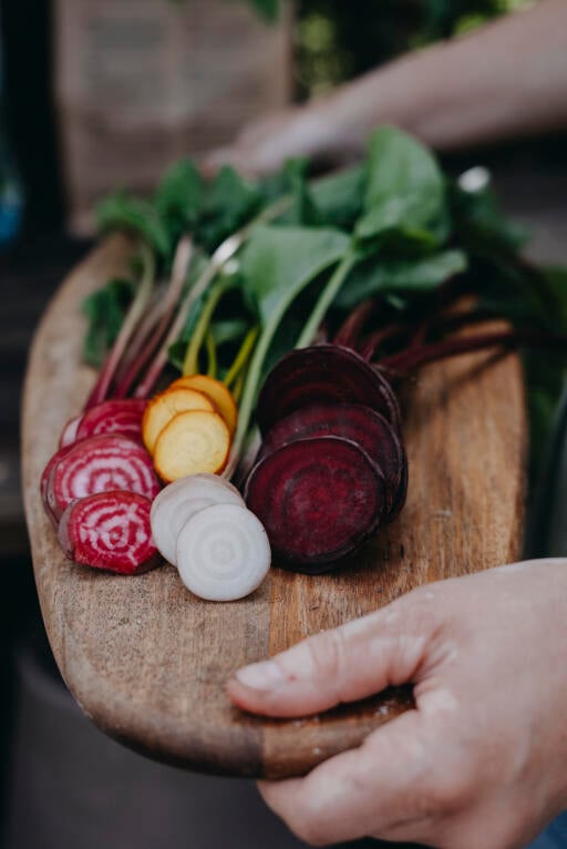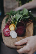 Miks av gule, hvite, røde og stripete rødbeter. Ikke så for tidlig; ved frost kan planten gå i blomst.