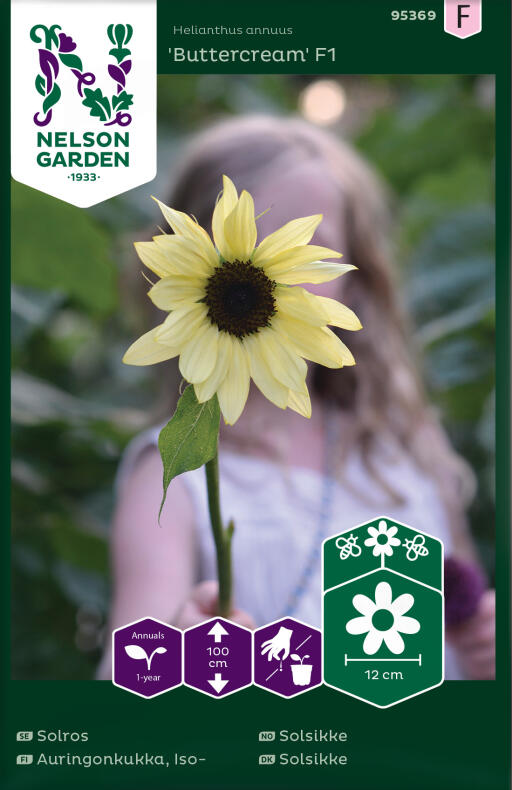 Lettdyrket solsikke med vakre, mildt lysegule blomster. Blomstene er fantastiske i bukett og fordi sorten er pollenfri unngår man pollenflekker på duken. Kan trenge støtte.
